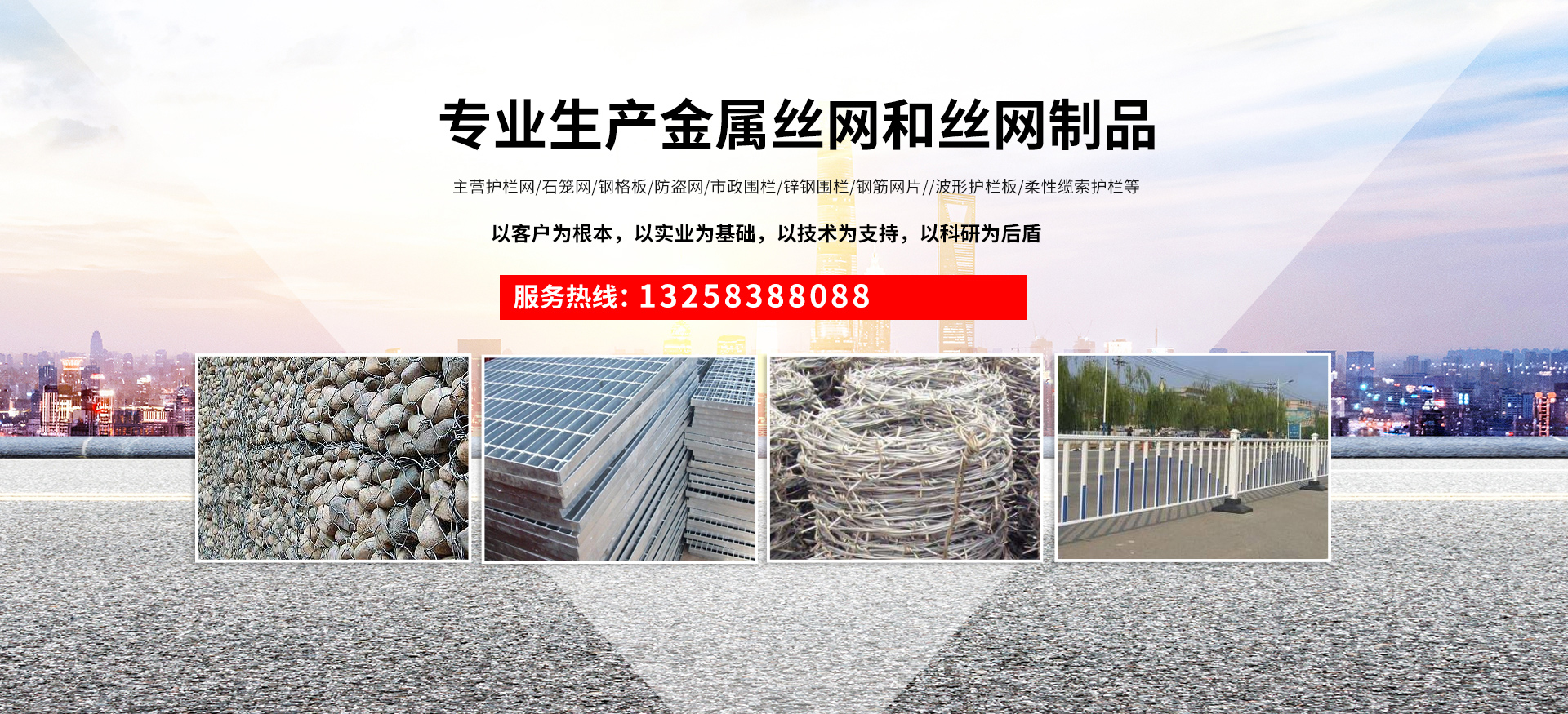 成都宏旭金屬絲網(wǎng)制造有限公司主營(yíng)護(hù)欄網(wǎng)系列、石籠網(wǎng)系列、鋼格板、防盜網(wǎng)、市政圍欄、鋅鋼圍欄、鋼筋網(wǎng)片、聲屏障系列、波形護(hù)欄板、柔性纜索護(hù)欄、SNS邊坡防護(hù)網(wǎng)等其他絲網(wǎng)類產(chǎn)品。特殊規(guī)格可加工定做,也可根據(jù)客戶來(lái)圖來(lái)樣定做。自創(chuàng)業(yè)以來(lái),公司一直堅(jiān)持市場(chǎng)為導(dǎo)向,以客戶為根本,以實(shí)業(yè)為基礎(chǔ),以技術(shù)為支持,以科研為后盾,集科研、生產(chǎn)、經(jīng)營(yíng)為一體,不斷研制開發(fā)新產(chǎn)品,開拓市場(chǎng),走綜合發(fā)展之路。多年來(lái),公司憑借過(guò)硬的質(zhì)量,良好的信譽(yù)、優(yōu)質(zhì)的服務(wù)、合理的價(jià)格,贏得了市場(chǎng)和商家的一致好評(píng)。